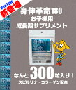 3個分のお値段で、4個お届け。2940円お得なセットはこちらお子様用成長期サプリ★今話題の身伸革命(シンシンカクメイ)180です。水溶性コラーゲン・スピルリナがお子様の成長に最適!スピルリナは、アミノ酸、ミネラルビタミンを豊富にバランスよく含む藻類で、NASAでは宇宙食にされるほど栄養バランスに注目されています。特に食の欧米化により、崩れた成長期のお子様の栄養バランス補助にお役立てください■商品名:身伸革命180■原材料名:スピルリナ、コラーゲン、アクアミネラル、ビタミンC、ヒジキ末、グルコン酸亜鉛、ナタネ硬化油、シェラック■内容量:60g(200mg×300粒)■保存方法:高温多湿を避け、開